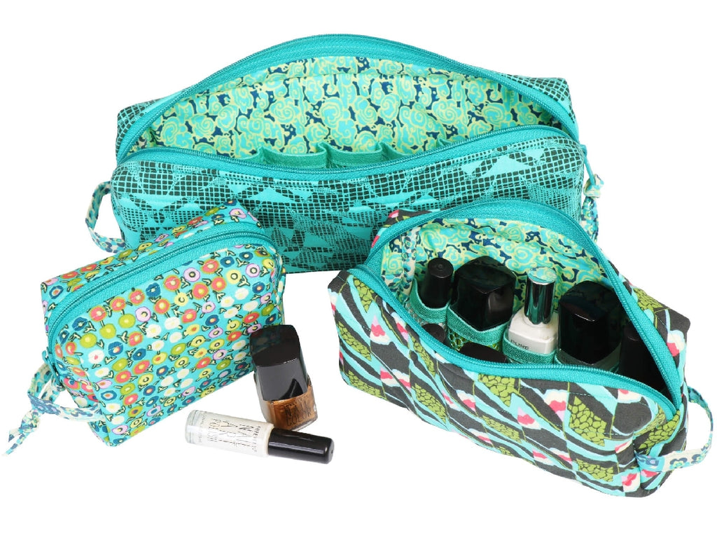 Pretty and practical, these softly-padded zippered bags with side loop handles are quick and easy to make. ByAnnie’s Soft and Stable gives them great body and stability. Mesh dividers separate and protect essential oils or nail polish in bottles from 5 to 15 ml and up to 3?? tall. Additional space down the middle can be used for more bottles or other supplies. Instructions included for bags in three sizes: small (with mesh dividers for 6 bottles), medium (10 bottles), large (14 bottles). If you prefer, you may skip the inner dividers and use the cases to carry cosmetics, pens and pencils, school supplies, and more. Quick and easy to make, these cases are perfect for gift-giving, too!