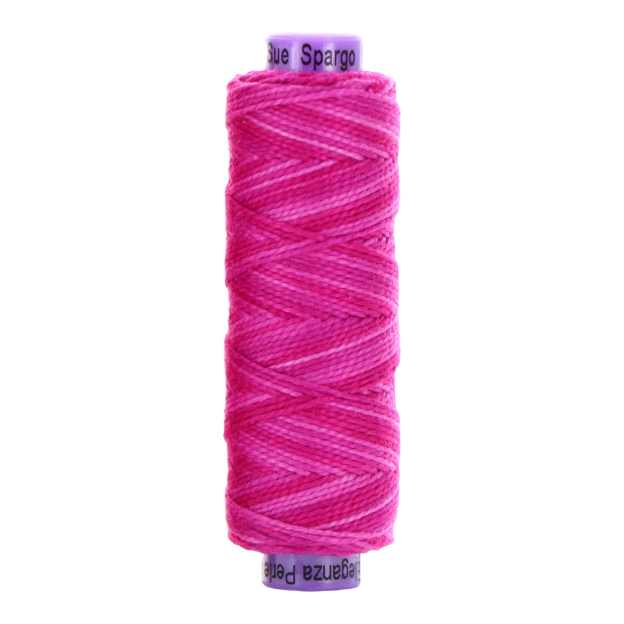 Sue Spargo's Eleganza Perle cotton collection is designed to meet the specific needs of hand stitchers, embroiderers and embellishers. Eleganza is made from 100% Giza 88, the highest calibre extra long staple Egyptian cotton. Fibers spun with this fiber create a thread of extreme softness, strength and luster. An extra 15% twist has been incorporated into the design of Eleganza resulting in a thread of superior stability, uniformity and sewability. Eleganza is double gassed and mercerized to eliminate the buildup of lint and snub, largely enriching the appeal of stitchery. Sue has designed a bright, saturated color palette along with a unique line of variegates which contain extra short variegations in order to provide rapid color change on small scale designs.