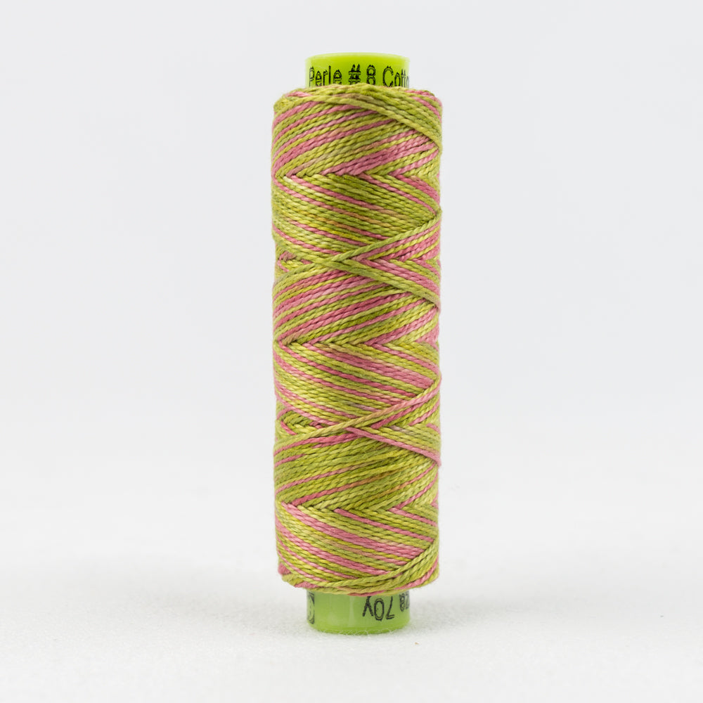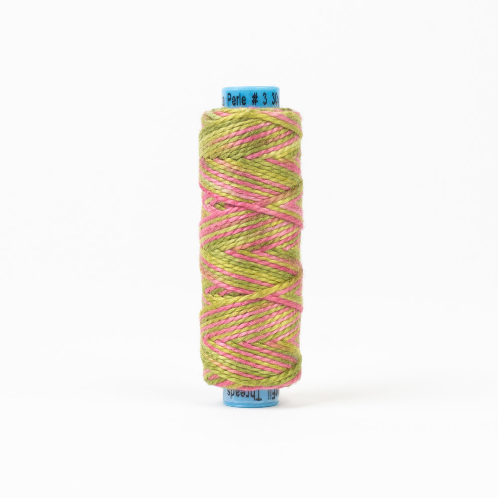 Sue Spargo's Eleganza Perle cotton collection is designed to meet the specific needs of hand stitchers, embroiderers and embellishers. Eleganza is made from 100% Giza 88, the highest calibre extra long staple Egyptian cotton. Fibers spun with this fiber create a thread of extreme softness, strength and luster. An extra 15% twist has been incorporated into the design of Eleganza resulting in a thread of superior stability, uniformity and sewability. Eleganza is double gassed and mercerized to eliminate the buildup of lint and snub, largely enriching the appeal of stitchery. Sue has designed a bright, saturated color palette along with a unique line of variegates which contain extra short variegations in order to provide rapid color change on small scale designs.