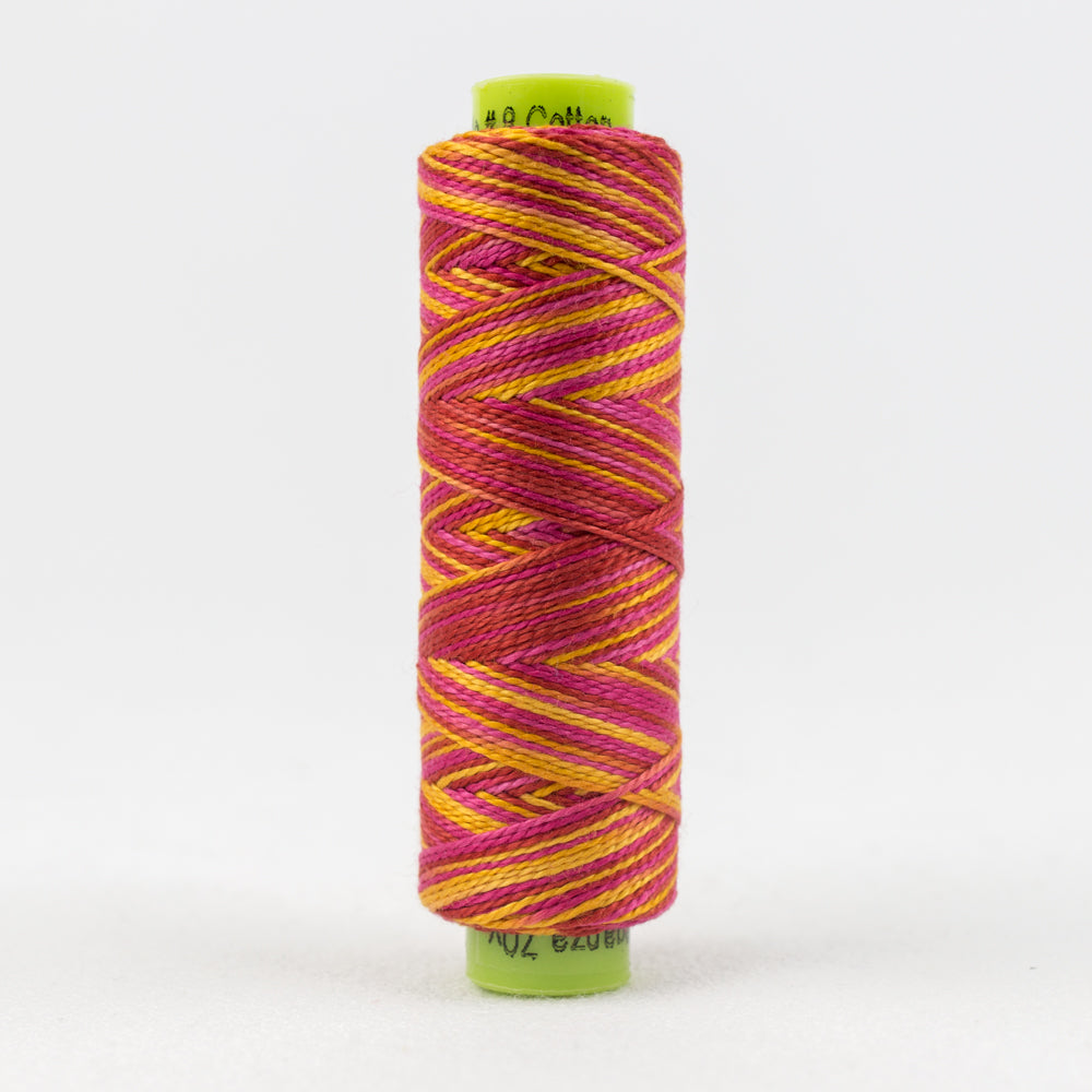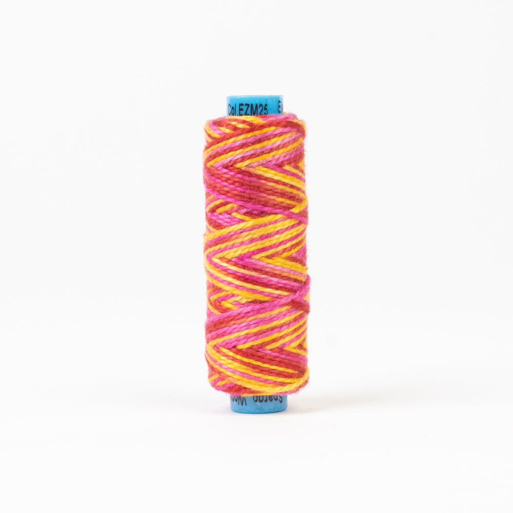 Sue Spargo's Eleganza Perle cotton collection is designed to meet the specific needs of hand stitchers, embroiderers and embellishers. Eleganza is made from 100% Giza 88, the highest calibre extra long staple Egyptian cotton. Fibers spun with this fiber create a thread of extreme softness, strength and luster. An extra 15% twist has been incorporated into the design of Eleganza resulting in a thread of superior stability, uniformity and sewability. Eleganza is double gassed and mercerized to eliminate the buildup of lint and snub, largely enriching the appeal of stitchery. Sue has designed a bright, saturated color palette along with a unique line of variegates which contain extra short variegations in order to provide rapid color change on small scale designs.