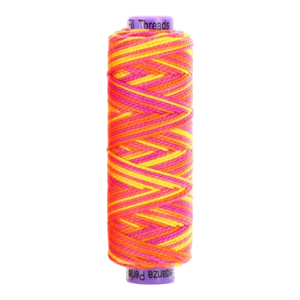 Sue Spargo's Eleganza Perle cotton collection is designed to meet the specific needs of hand stitchers, embroiderers and embellishers. Eleganza is made from 100% Giza 88, the highest calibre extra long staple Egyptian cotton. Fibers spun with this fiber create a thread of extreme softness, strength and luster. An extra 15% twist has been incorporated into the design of Eleganza resulting in a thread of superior stability, uniformity and sewability. Eleganza is double gassed and mercerized to eliminate the buildup of lint and snub, largely enriching the appeal of stitchery. Sue has designed a bright, saturated color palette along with a unique line of variegates which contain extra short variegations in order to provide rapid color change on small scale designs.