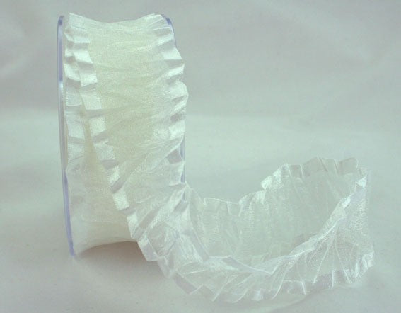 TRIM PLEATED ORGANZA 38MM WHITE PER METRE